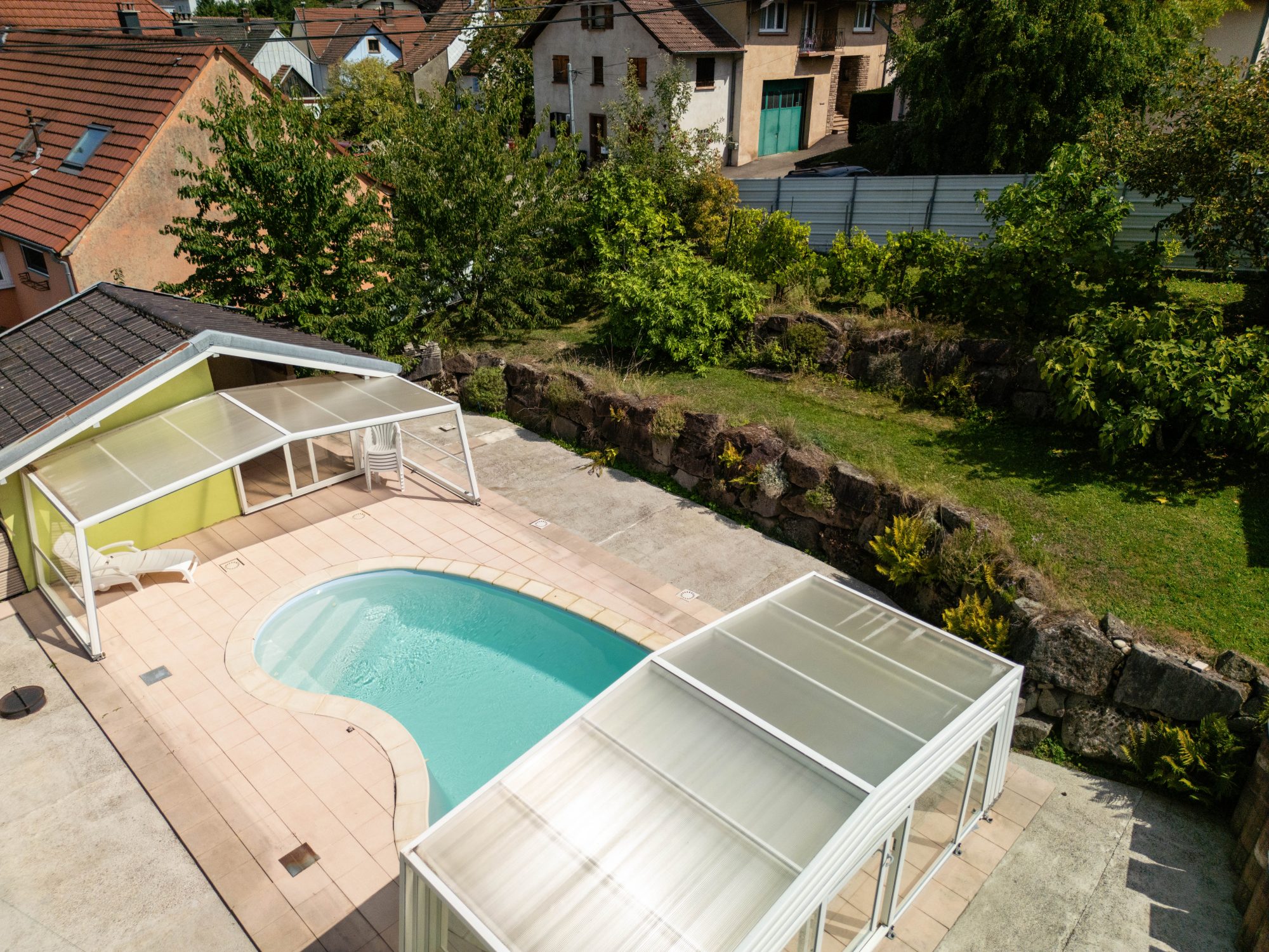 Vous profiterez d’une entrée indépendante, d’un grand jardin privatif avec piscine, ainsi que d’une annexe extérieure actuellement utilisée comme espace de stockage — idéale pour aménager un pool-house, une salle d’eau d’été ou un atelier selon vos besoins.