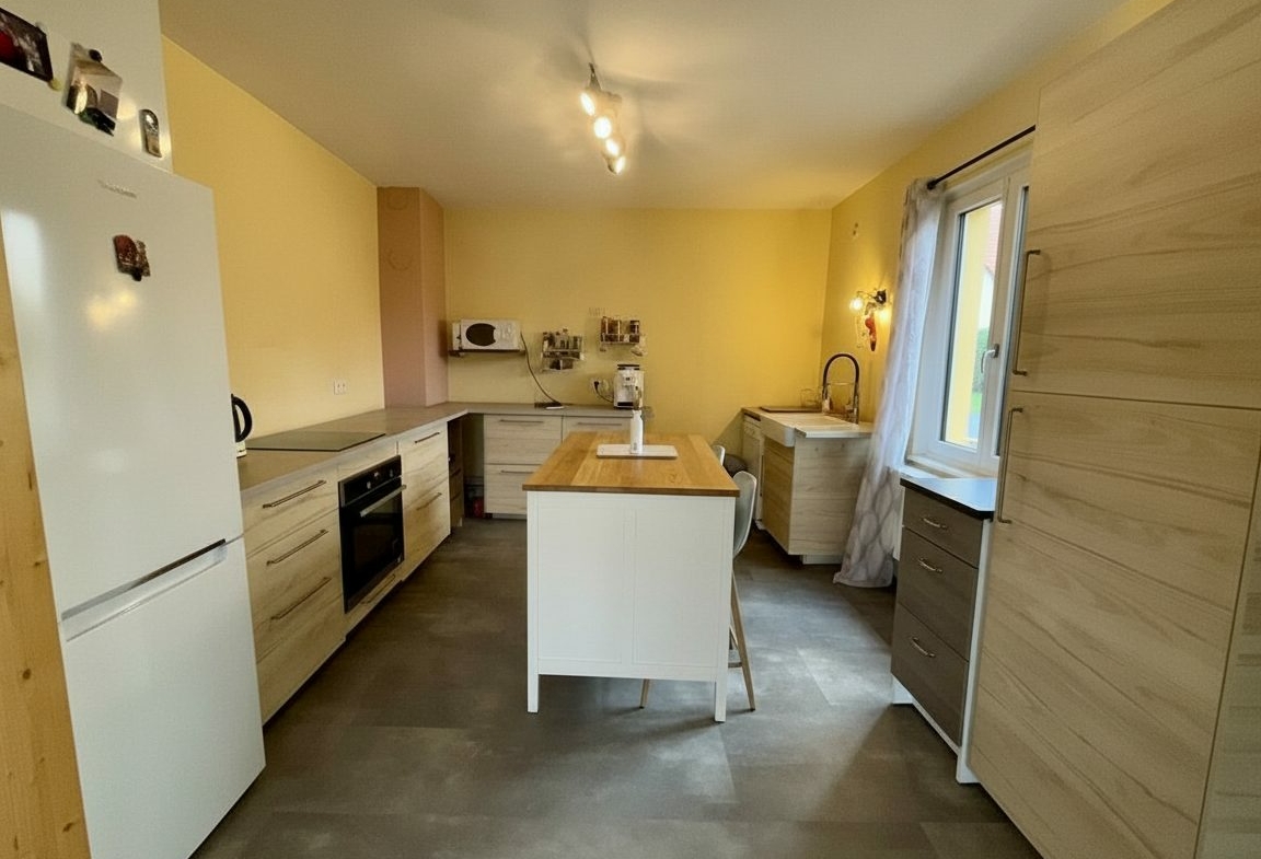 Au rez-de-chaussée, vous trouverez une cuisine équipée récente de 14,45 m², un salon-séjour lumineux, deux chambres, une salle de bains ainsi que des toilettes séparées. Un accès direct au garage est également possible depuis ce niveau.