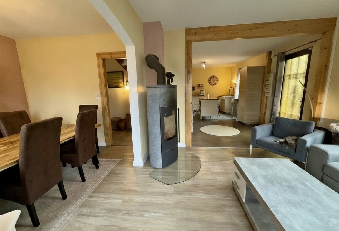 Le bien est équipé d’un chauffage par chaudière gaz à condensation récente, complété par un poêle à bois avec tubage récent. Les menuiseries sont en double et triple vitrage et l’électricité a été rénovée. La maison est également raccordée à la fibre.