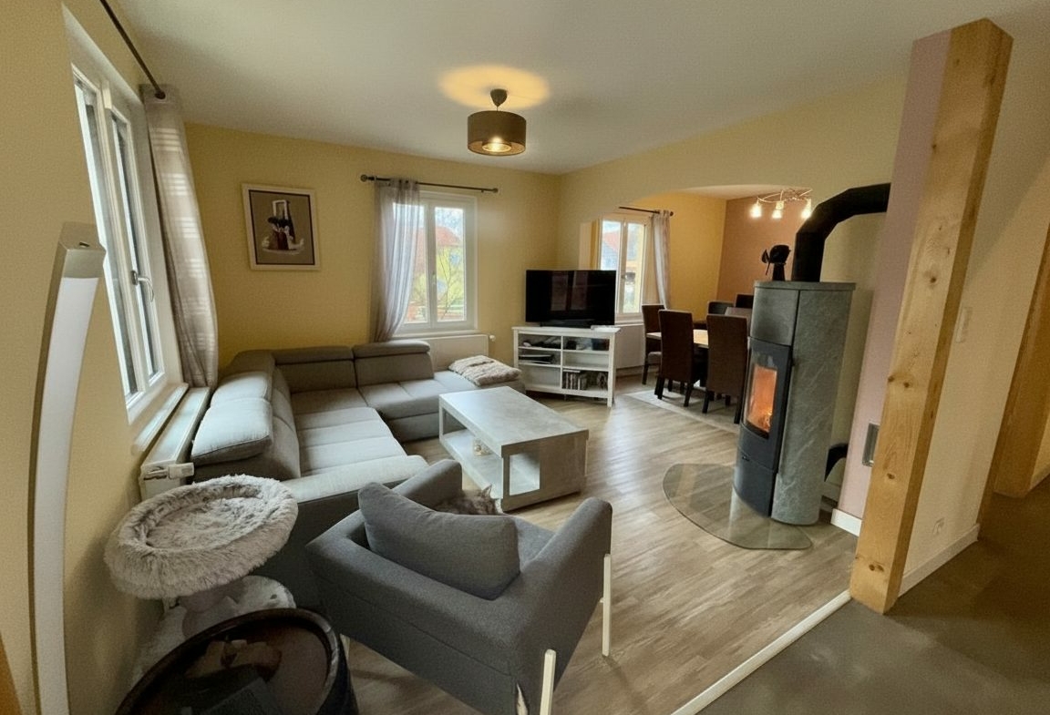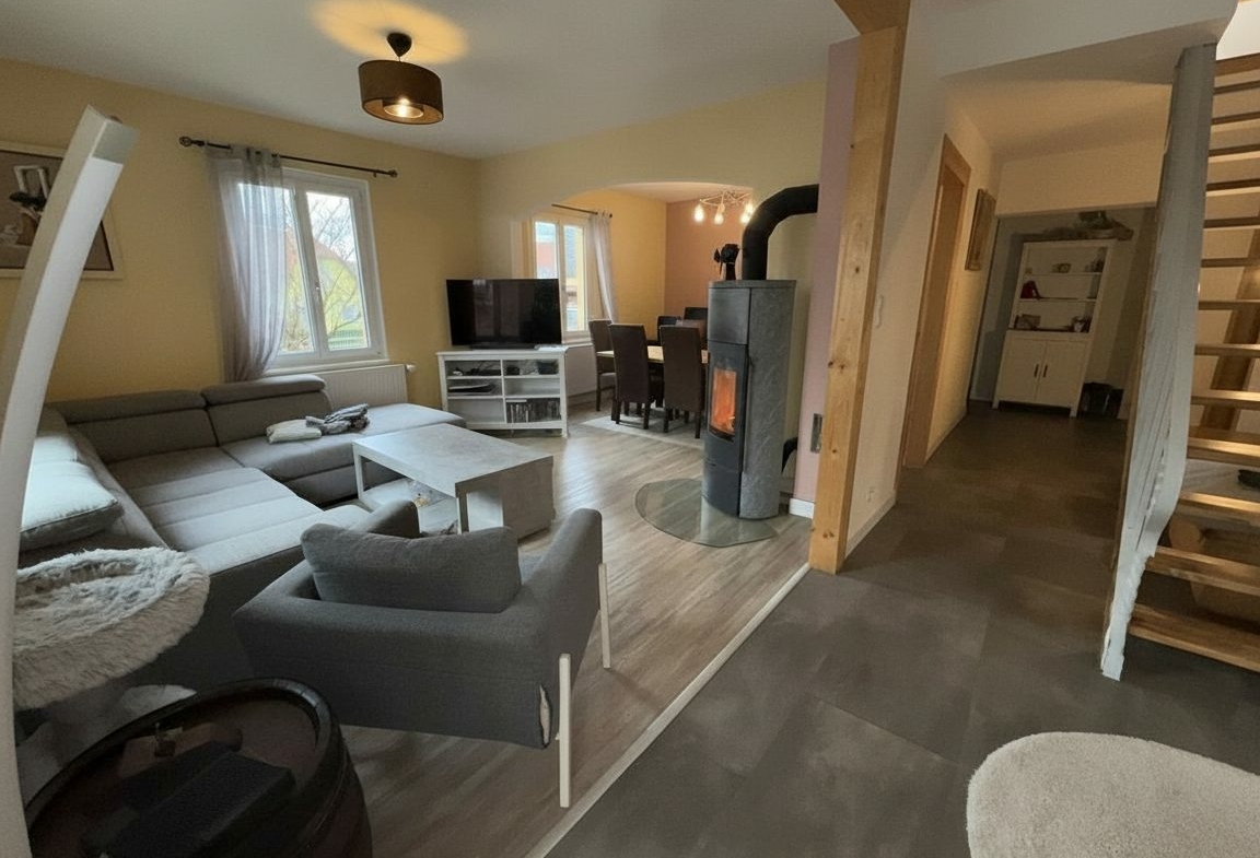 Située dans un environnement calme, cette maison de 152,65 m² habitables et 163,79 m² au sol, implantée sur un terrain de 6,09 ares, offre de beaux volumes ainsi qu’une dépendance avec de nombreuses possibilités d’aménagement.