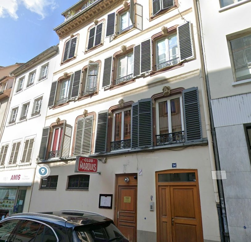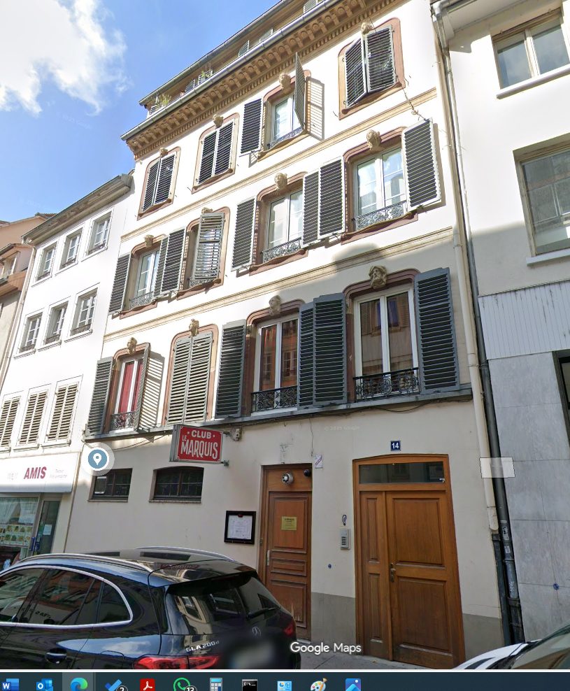 Au 1er étage/ 4 d’un immeuble typique du centre ville de Strasbourg construit en 1766, orné de sculptures.